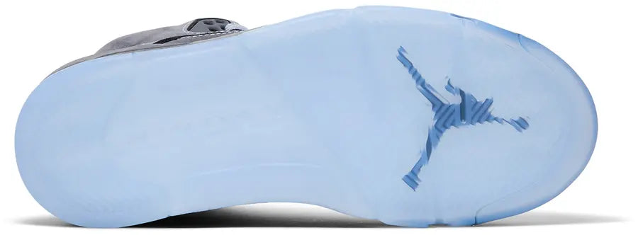The 2026 edition of the Air Jordan 5 'Wolf Grey' brings back grey layered nubuck on the upper, featuring white contrast stitching and breathable quarter panel netting. An embroidered '23' graces the lateral heel, while Jumpman branding decorates the silver reflective tongue and back heel. White shark tooth detailing can be found on the midsole, fitted with visible Air-sole cushioning in the heel and supported by a translucent outsole.